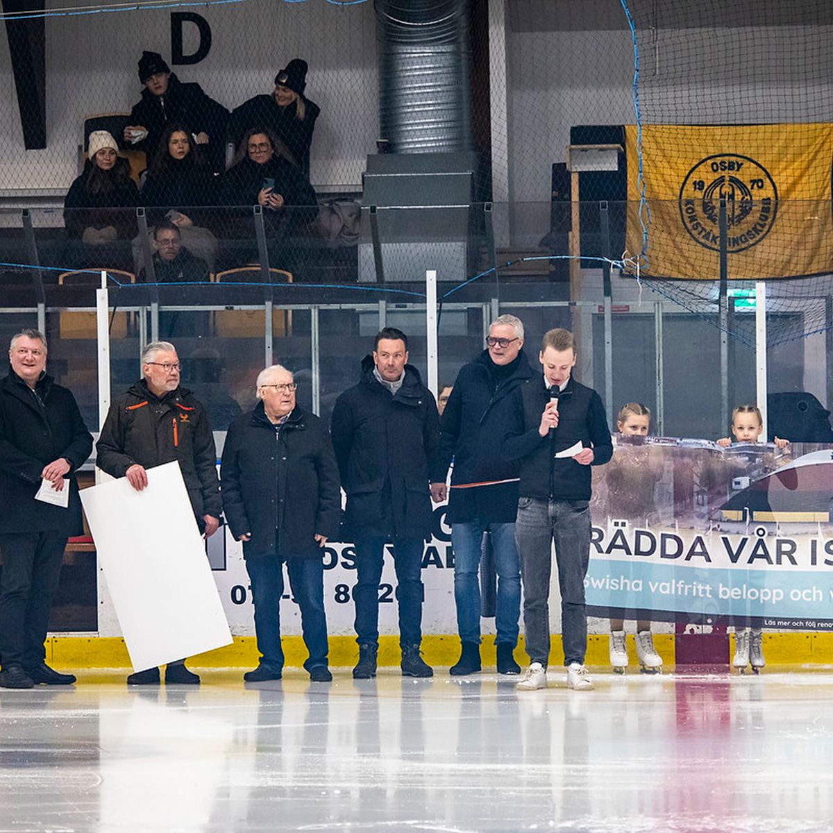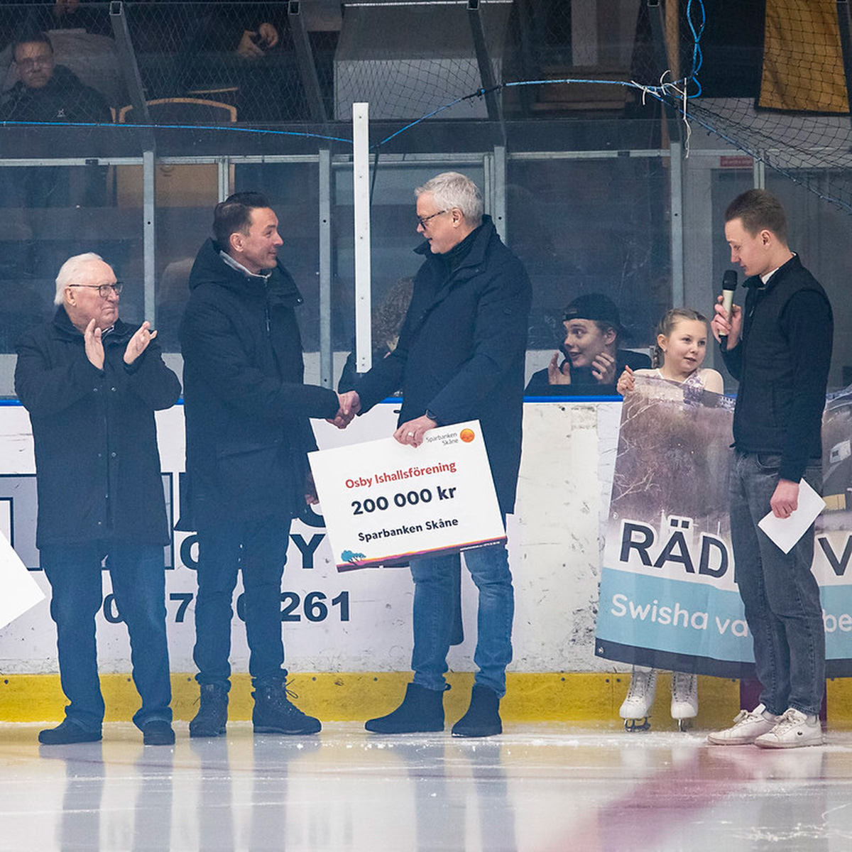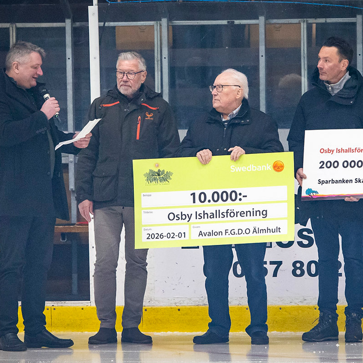 Redan innan nedsläpp bjöds publiken på Ishallsföreningens intro med barn från både Osby Konståkningsklubb och Osby Ishockeyklubb, vilket skapade en härlig stämning och visade upp framtidens ishallstalanger. Därefter fick föreningen ta emot värdefullt stöd. Peter ”Pidda” Andersson från Sparbanken Skåne delade ut en check till föreningen och Avalon F.G.D.O Älmhult representerad av Pontus Haglund, Bengt Johansson och Mats Mårtensson, delade ut årets stipendium till Osby Ishallsförening. Motiveringen lyfte föreningens arbete för att bevara och utveckla Osby ishall.