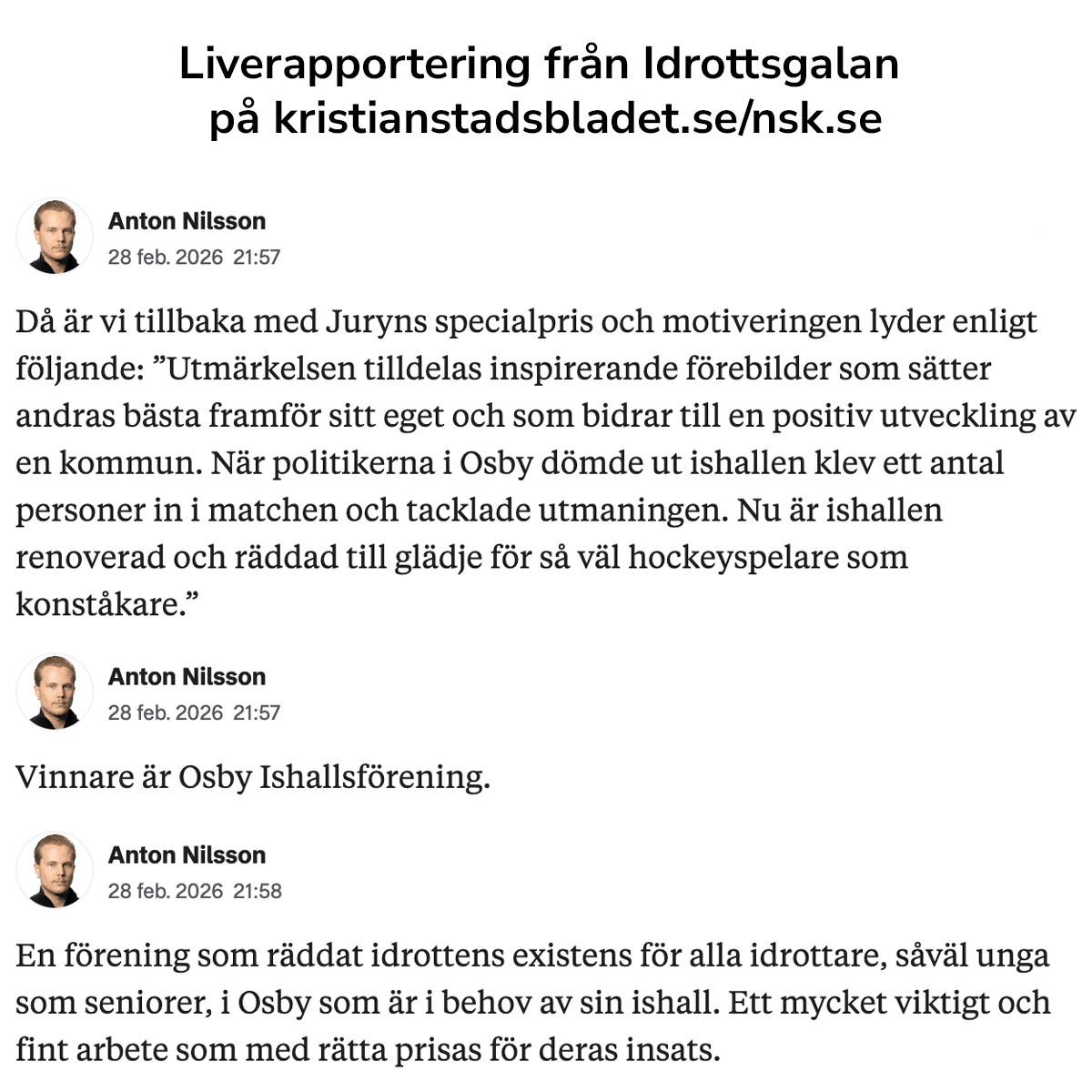 Stort tack till juryn för Nordöstra Skånes Idrottsgala/Föreningen för Nordöstra Skånes Idrottsfrämjande för den hedrande utmärkelsen.
