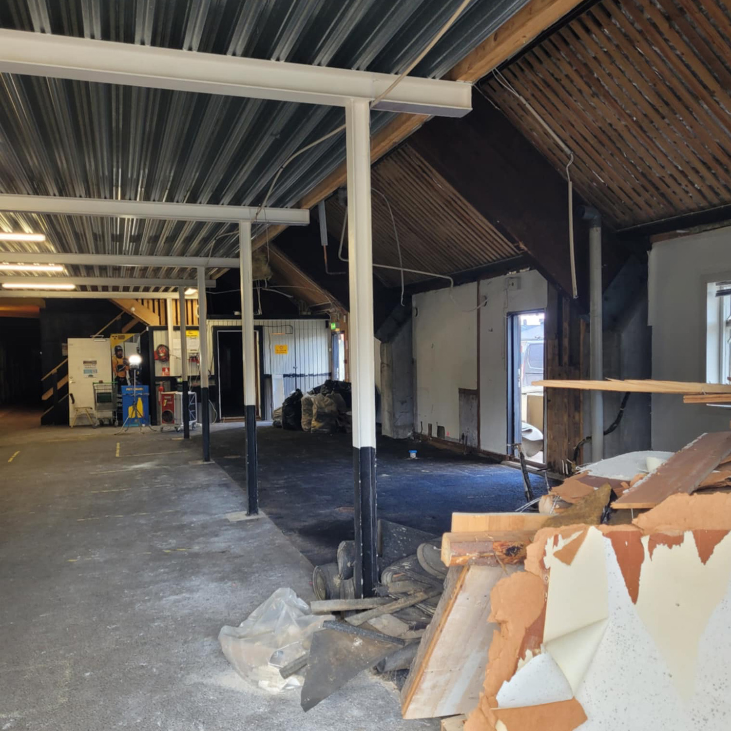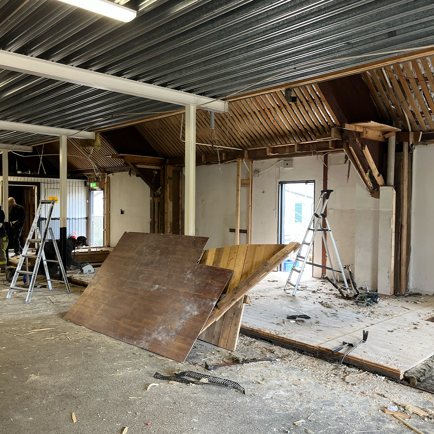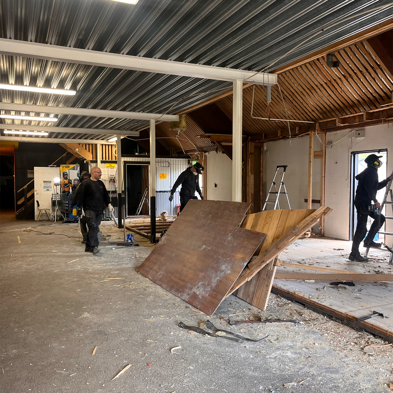 Osby ishall vecka 17 och rivningsarbetet fortsätter med stor energi och engagemang. Fokus under helgen ligger på att riva OIK:s kansli, kiosken och juniorernas omklädningsrum.