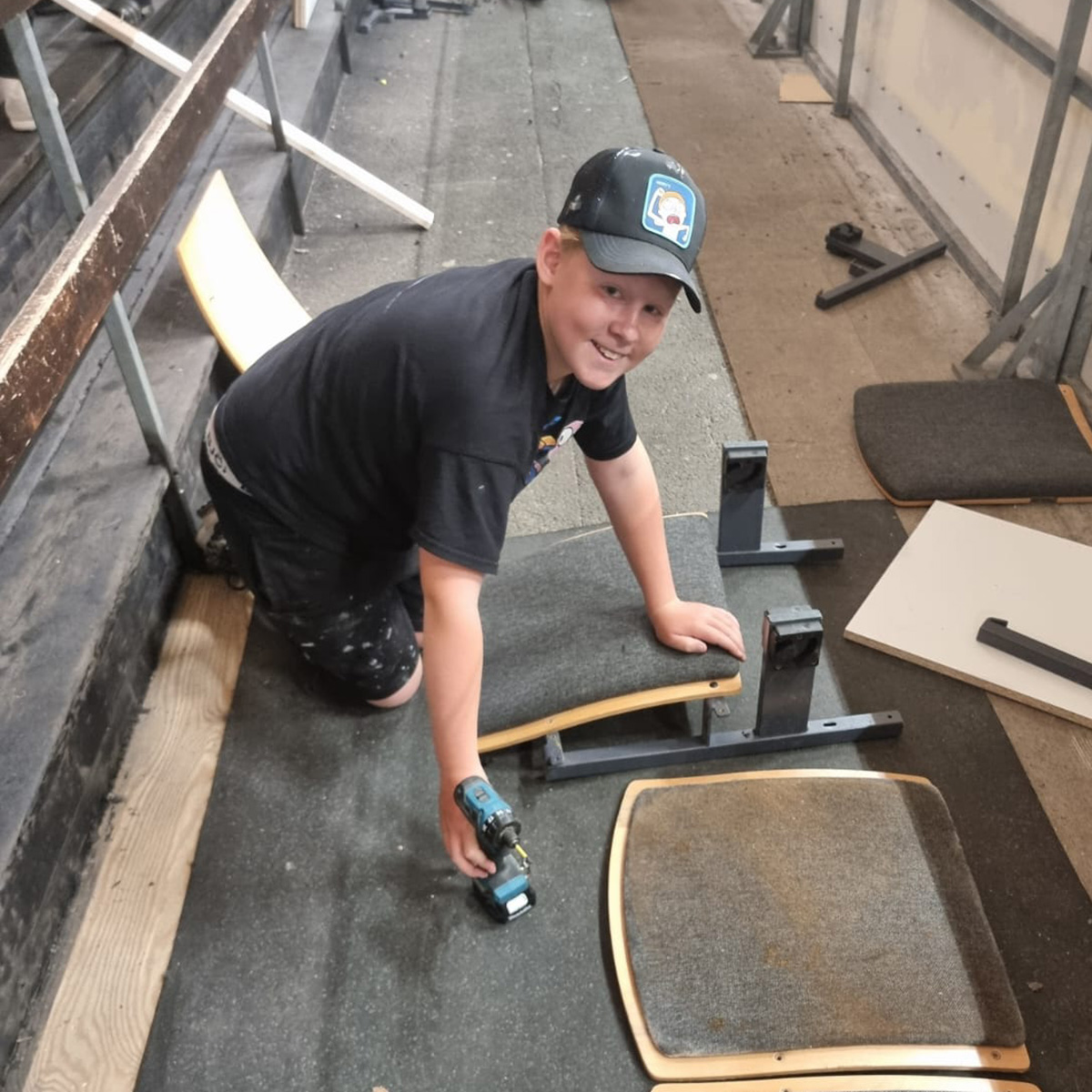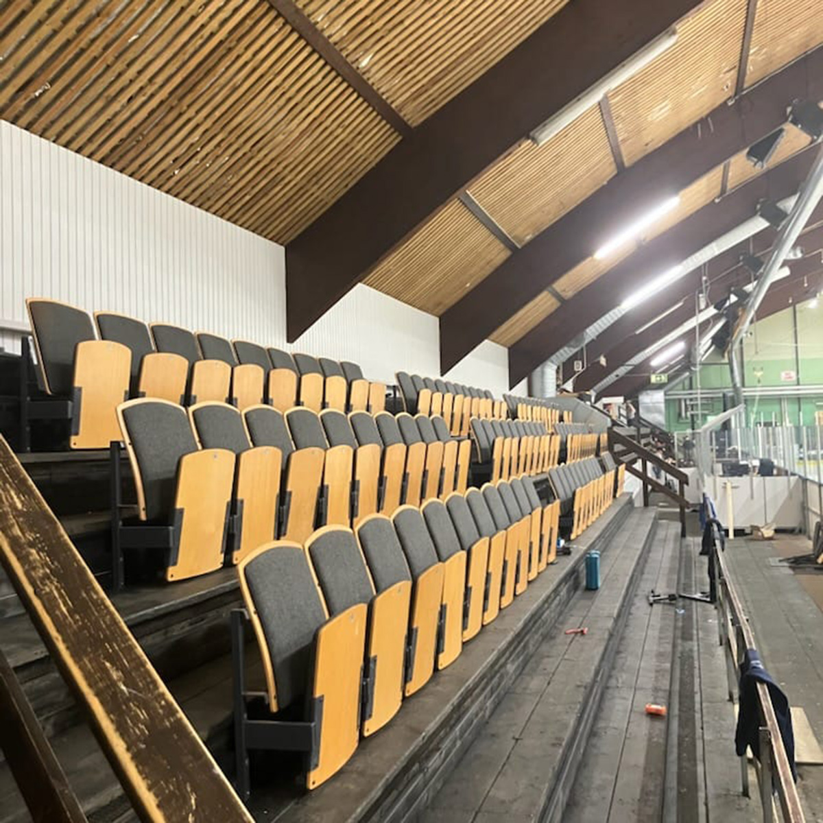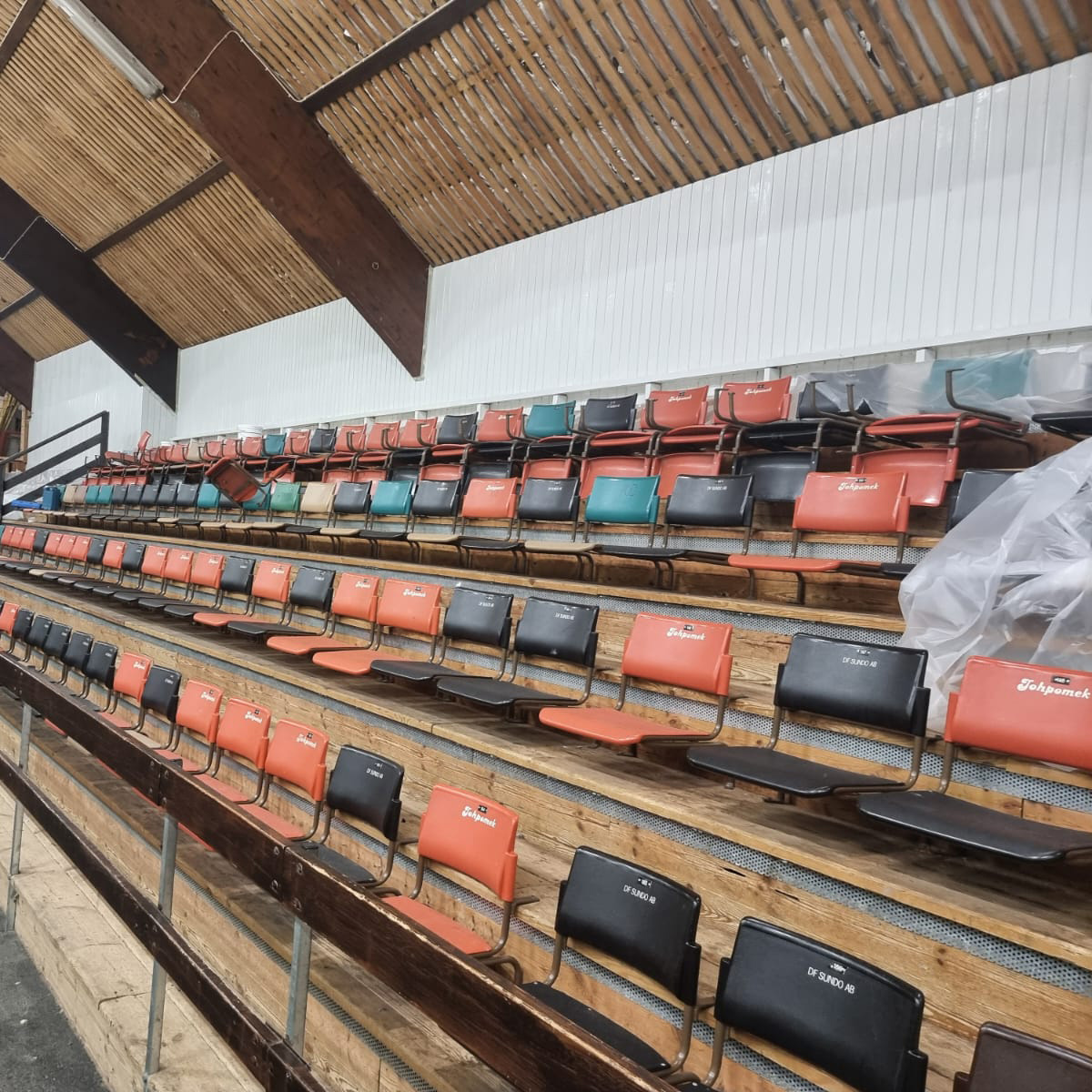 Som pricken över i:et har vi också fått nya (okej, bättre begagnade) stolar från Kristianstads arena. De passar perfekt i vår nymålade hall – och med vaddering dessutom, så blir det lite varmare och skönare att sitta. Ett stort tack till Alfing Seating som generöst har skänkt stolarna!