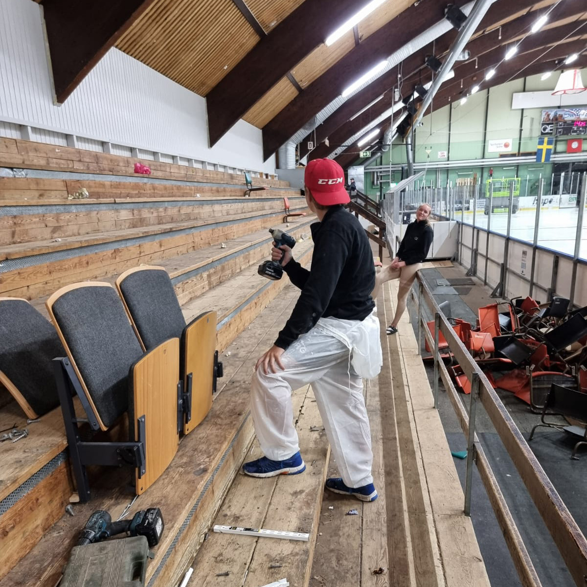 Under de första veckorna av sommaren har läktarna fått sig ett riktigt lyft. Sommarjobbande ungdomar har målat, skruvat och fixat – och några av våra trogna hockey-farfäder har hjälpt till med både verktyg och goda råd. Extra fint är att föräldrar har gått in och sponsrat ungdomarnas lön, och färgen har vi fått av Teknos – stort tack!